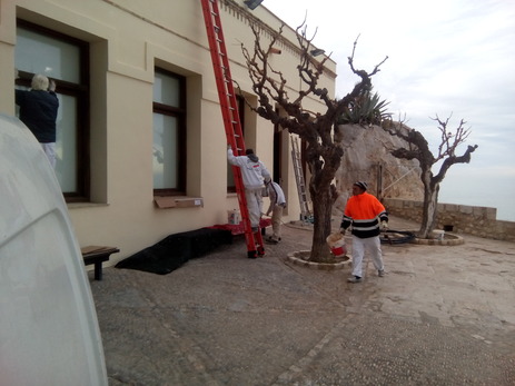 La Brigada Municipal d’Obres de l’Ajuntament de Peníscola, juntament al personal del Pla d’Ocupació Conjunta, continuen les tasques de pintura de vials i edificis públics durant els mesos d’hivern. En aquests dies, a més de continuar amb els treballs en vies urbanes, els tres peons contractats a través del pla impulsat per l’administració local, provincial i autonòmica, i el responsable de les tasques de pintura de la brigada, estan pintant la façana exterior i els interiors del Museu de la Mar, un dels centres de visitants més concorreguts del municipi, que suma 100.000 visites anuals.