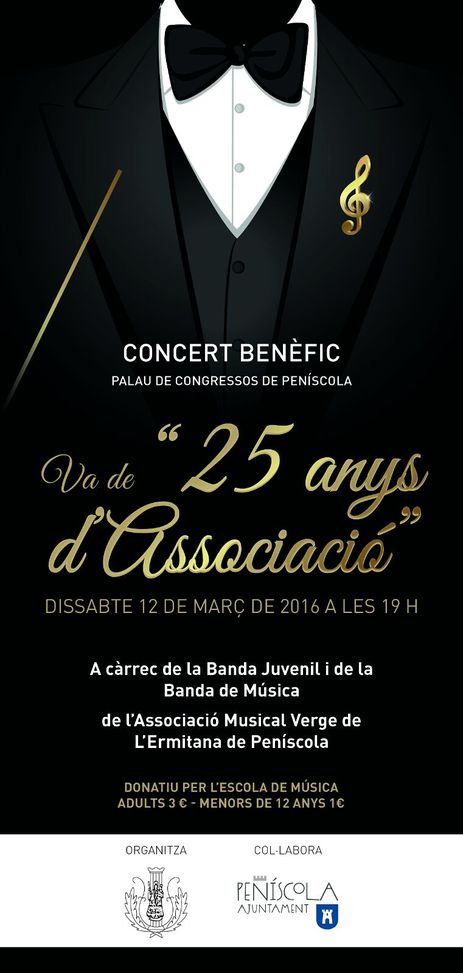 Va de…25 aniversari, és el títol del pròxim concert benèfic que oferiran conjuntament la banda juvenil de l’escola de música Ciutat de Peníscola, i la banda de música de l’Associació Musical Verge de l’Ermitana de Peníscola. I és que enguany, l’Associació Musical compleix el seu 25é aniversari, tot i que per tots és sabut que la banda de música té molta més història que no pas 25 anys.
