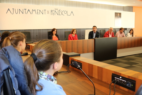 L’alcalde de Peníscola, Andrés Martínez, ha rebut avui els i les alumnes de sisé curs de primària del CEIP Jaime Sanz de la població en el Saló de Plens de l’Ajuntament. En aquest espai, en el qual es reuneix l’òrgan col·legiat, l’alcalde ha explicat als xiquets i xiquetes el funcionament de la institució local, el significat dels símbols que presideixen el saló noble i les funcions d’un alcalde i de la corporació municipal.